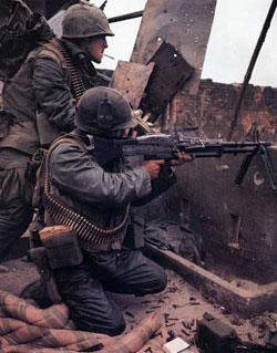 the perimeter. As we came across dead NVA, we tossed their bodies over